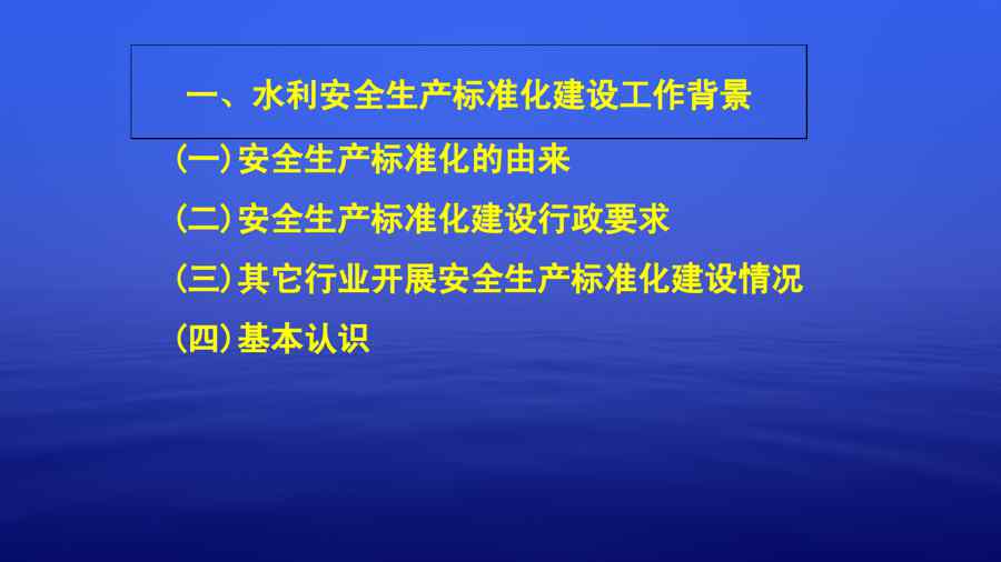 本站资深用户发布了最新的《{安全生产管理}水利水电施工企业安全生产标准化培训讲义》文档,以下内容为预览,详细内容可下载阅读。 声明:本站所有文章,如无特殊说明或标注,均为本站原创发布。任何个人或组织,在未征得本站同意时,禁止复制、盗用、采集、发布本站内容到任何网站、书籍等各类媒体平台。如若本站内容侵犯了原著者的合法权益,可联系我们进行处理。
