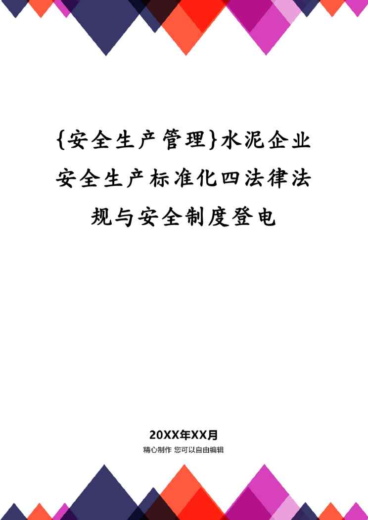 本站正式发布了《{安全生产管理}水泥企业安全生产标准化四法律法规与安全制度登电》文档,文档详细内容可下载阅读。 声明:本站所有文章,如无特殊说明或标注,均为本站原创发布。任何个人或组织,在未征得本站同意时,禁止复制、盗用、采集、发布本站内容到任何网站、书籍等各类媒体平台。如若本站内容侵犯了原著者的合法权益,可联系我们进行处理。