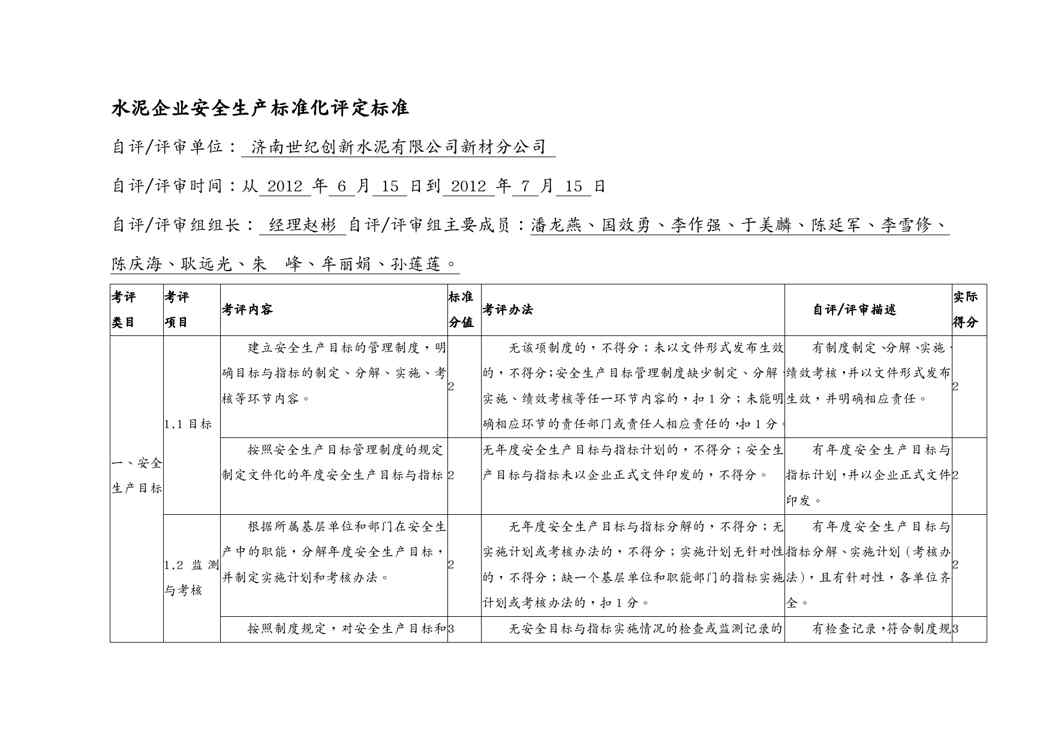 不久前,最新文档《{安全生产管理}水泥企业安全生产标准化评定得分及汇总》全文正式在本站发布,感兴趣的用户可以下载阅读。 声明:本站所有文章,如无特殊说明或标注,均为本站原创发布。任何个人或组织,在未征得本站同意时,禁止复制、盗用、采集、发布本站内容到任何网站、书籍等各类媒体平台。如若本站内容侵犯了原著者的合法权益,可联系我们进行处理。
