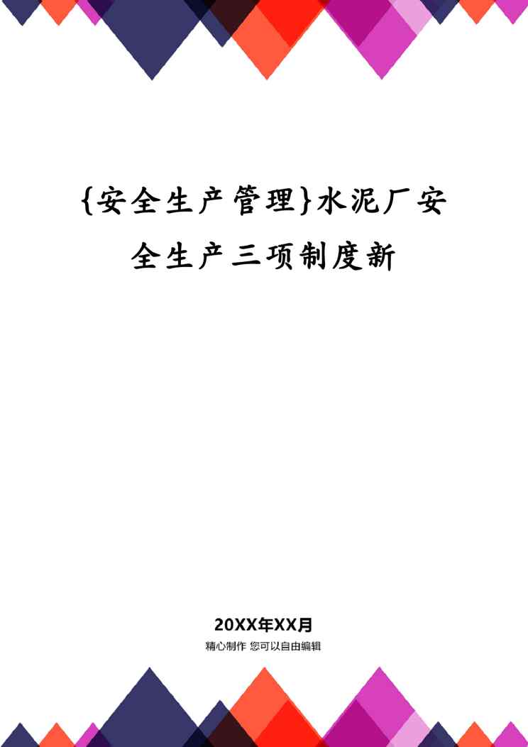 不久前,最新文档《{安全生产管理}水泥厂安全生产三项制度新》全文正式在本站发布,感兴趣的用户可以下载阅读。 声明:本站所有文章,如无特殊说明或标注,均为本站原创发布。任何个人或组织,在未征得本站同意时,禁止复制、盗用、采集、发布本站内容到任何网站、书籍等各类媒体平台。如若本站内容侵犯了原著者的合法权益,可联系我们进行处理。