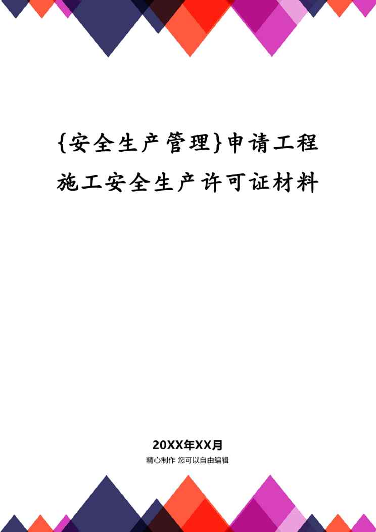 不久前,最新文档《{安全生产管理}申请工程施工安全生产许可证材料》全文正式在本站发布,感兴趣的用户可以下载阅读。 声明:本站所有文章,如无特殊说明或标注,均为本站原创发布。任何个人或组织,在未征得本站同意时,禁止复制、盗用、采集、发布本站内容到任何网站、书籍等各类媒体平台。如若本站内容侵犯了原著者的合法权益,可联系我们进行处理。