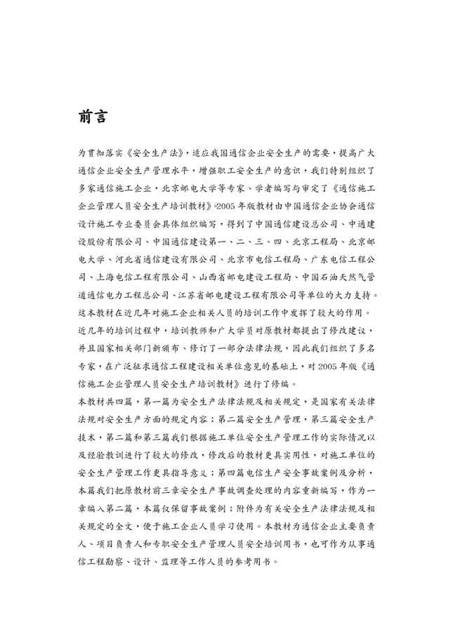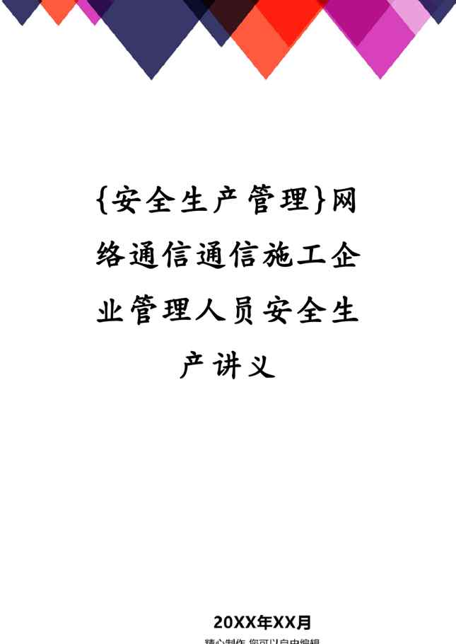 本站正式发布了《{安全生产管理}网络通信通信施工企业管理人员安全生产讲义》文档,文档详细内容可下载阅读。 声明:本站所有文章,如无特殊说明或标注,均为本站原创发布。任何个人或组织,在未征得本站同意时,禁止复制、盗用、采集、发布本站内容到任何网站、书籍等各类媒体平台。如若本站内容侵犯了原著者的合法权益,可联系我们进行处理。