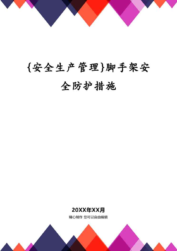 本站正式发布了《{安全生产管理}脚手架安全防护措施》文档,文档详细内容可下载阅读。 声明:本站所有文章,如无特殊说明或标注,均为本站原创发布。任何个人或组织,在未征得本站同意时,禁止复制、盗用、采集、发布本站内容到任何网站、书籍等各类媒体平台。如若本站内容侵犯了原著者的合法权益,可联系我们进行处理。