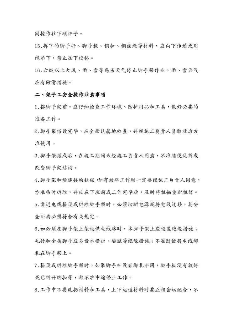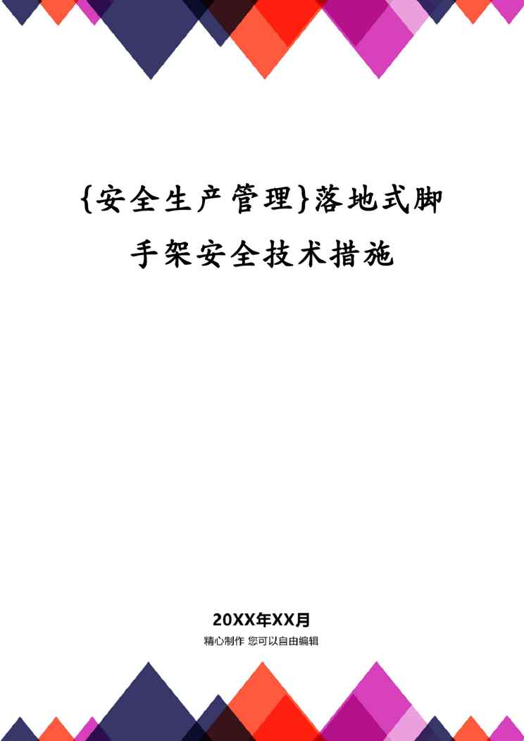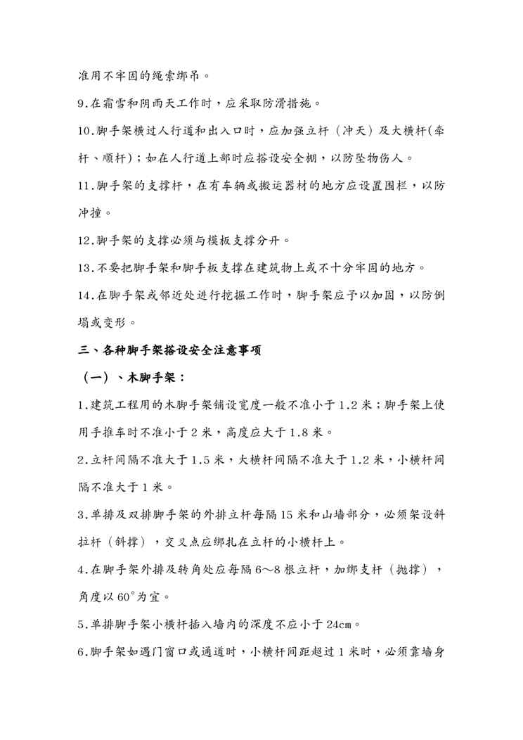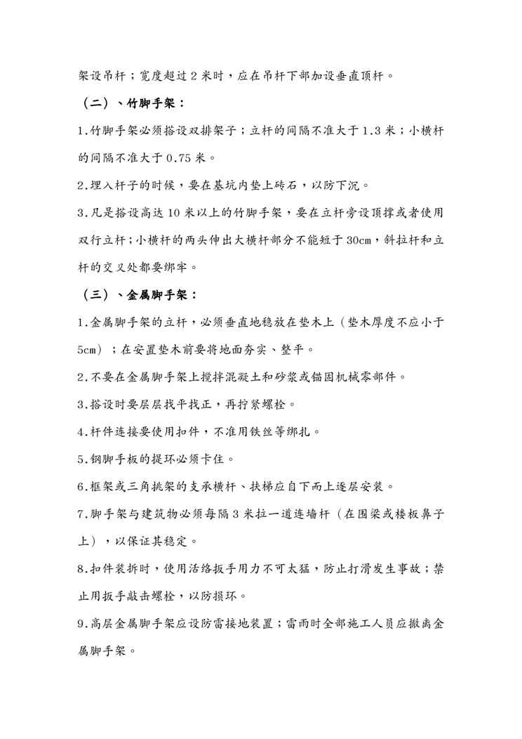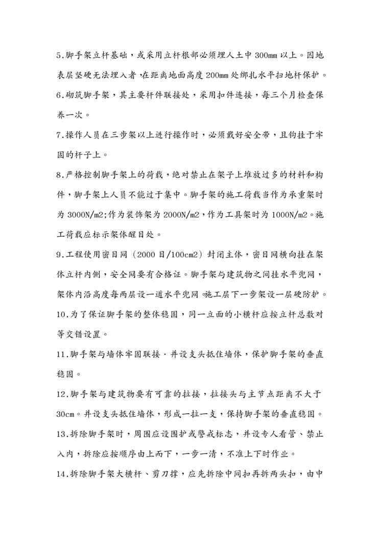 本站资深用户发布了最新的《{安全生产管理}落地式脚手架安全技术措施》文档,以下内容为预览,详细内容可下载阅读。 声明:本站所有文章,如无特殊说明或标注,均为本站原创发布。任何个人或组织,在未征得本站同意时,禁止复制、盗用、采集、发布本站内容到任何网站、书籍等各类媒体平台。如若本站内容侵犯了原著者的合法权益,可联系我们进行处理。