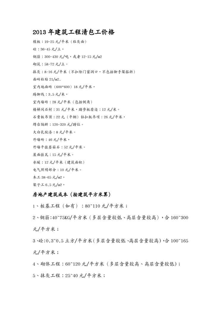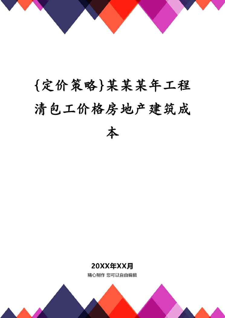 本站正式发布了《{定价策略}某某某年工程清包工价格房地产建筑成本》文档,文档详细内容可下载阅读。 声明:本站所有文章,如无特殊说明或标注,均为本站原创发布。任何个人或组织,在未征得本站同意时,禁止复制、盗用、采集、发布本站内容到任何网站、书籍等各类媒体平台。如若本站内容侵犯了原著者的合法权益,可联系我们进行处理。