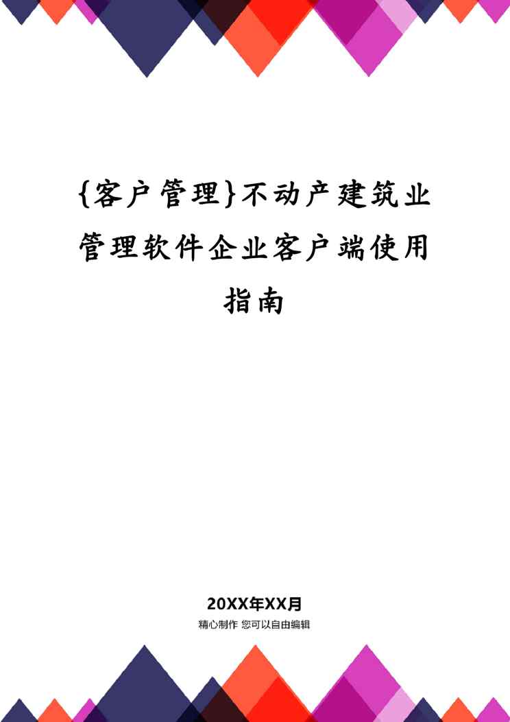 本站正式发布了《{客户管理}不动产建筑业管理软件企业客户端使用指南》文档,文档详细内容可下载阅读。 声明:本站所有文章,如无特殊说明或标注,均为本站原创发布。任何个人或组织,在未征得本站同意时,禁止复制、盗用、采集、发布本站内容到任何网站、书籍等各类媒体平台。如若本站内容侵犯了原著者的合法权益,可联系我们进行处理。