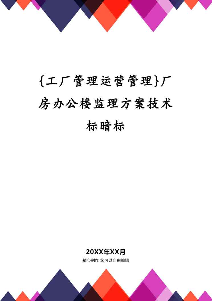 本站正式发布了《{工厂管理运营管理}厂房办公楼监理方案技术标暗标》文档,文档详细内容可下载阅读。 声明:本站所有文章,如无特殊说明或标注,均为本站原创发布。任何个人或组织,在未征得本站同意时,禁止复制、盗用、采集、发布本站内容到任何网站、书籍等各类媒体平台。如若本站内容侵犯了原著者的合法权益,可联系我们进行处理。