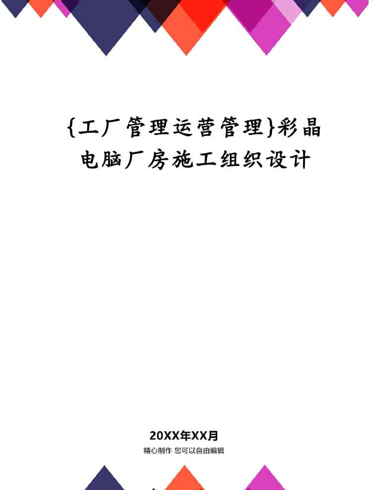 不久前,最新文档《{工厂管理运营管理}彩晶电脑厂房施工组织设计》全文正式在本站发布,感兴趣的用户可以下载阅读。 声明:本站所有文章,如无特殊说明或标注,均为本站原创发布。任何个人或组织,在未征得本站同意时,禁止复制、盗用、采集、发布本站内容到任何网站、书籍等各类媒体平台。如若本站内容侵犯了原著者的合法权益,可联系我们进行处理。