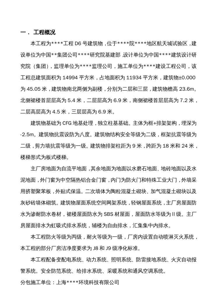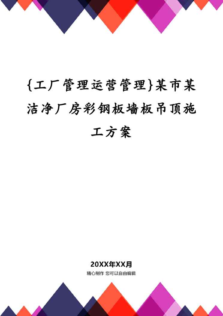 本站资深用户发布了最新的《{工厂管理运营管理}某市某洁净厂房彩钢板墙板吊顶施工方案》文档,以下内容为预览,详细内容可下载阅读。 声明:本站所有文章,如无特殊说明或标注,均为本站原创发布。任何个人或组织,在未征得本站同意时,禁止复制、盗用、采集、发布本站内容到任何网站、书籍等各类媒体平台。如若本站内容侵犯了原著者的合法权益,可联系我们进行处理。