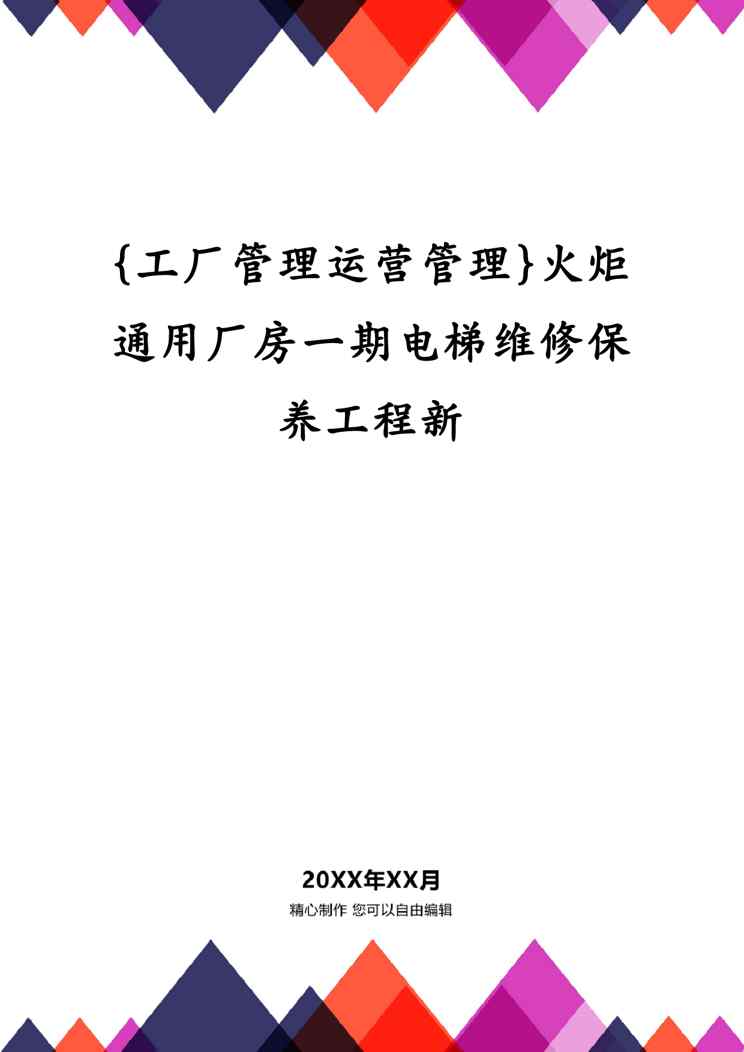 本站正式发布了《{工厂管理运营管理}火炬通用厂房一期电梯维修保养工程新》文档,文档详细内容可下载阅读。 声明:本站所有文章,如无特殊说明或标注,均为本站原创发布。任何个人或组织,在未征得本站同意时,禁止复制、盗用、采集、发布本站内容到任何网站、书籍等各类媒体平台。如若本站内容侵犯了原著者的合法权益,可联系我们进行处理。