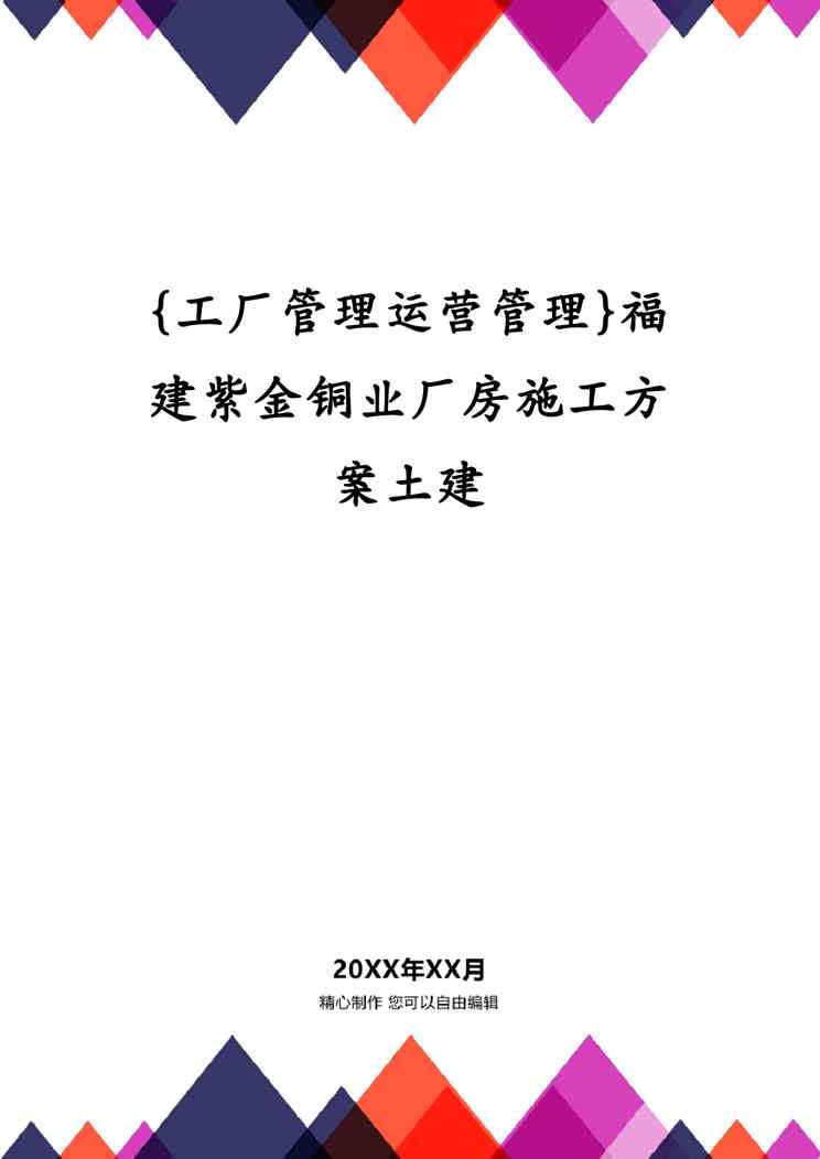 本站资深用户发布了最新的《{工厂管理运营管理}福建紫金铜业厂房施工方案土建》文档,以下内容为预览,详细内容可下载阅读。 声明:本站所有文章,如无特殊说明或标注,均为本站原创发布。任何个人或组织,在未征得本站同意时,禁止复制、盗用、采集、发布本站内容到任何网站、书籍等各类媒体平台。如若本站内容侵犯了原著者的合法权益,可联系我们进行处理。