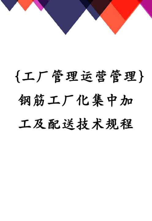 本站正式发布了《{工厂管理运营管理}钢筋工厂化集中加工及配送技术规程》文档,文档详细内容可下载阅读。 声明:本站所有文章,如无特殊说明或标注,均为本站原创发布。任何个人或组织,在未征得本站同意时,禁止复制、盗用、采集、发布本站内容到任何网站、书籍等各类媒体平台。如若本站内容侵犯了原著者的合法权益,可联系我们进行处理。