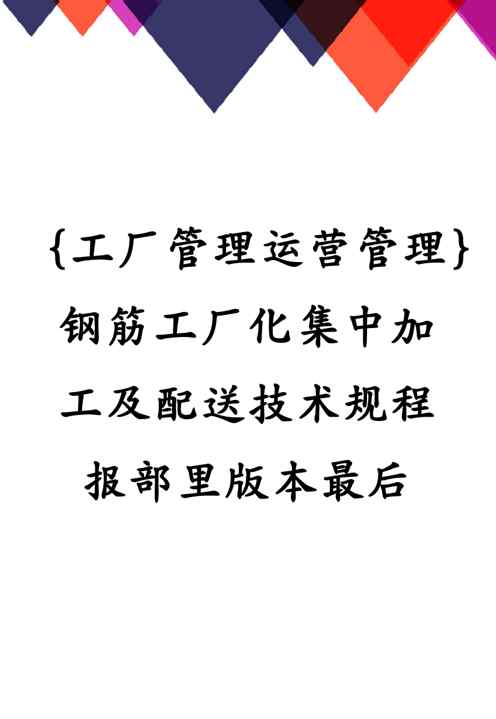 不久前,最新文档《{工厂管理运营管理}钢筋工厂化集中加工及配送技术规程报部里版本最后》全文正式在本站发布,感兴趣的用户可以下载阅读。 声明:本站所有文章,如无特殊说明或标注,均为本站原创发布。任何个人或组织,在未征得本站同意时,禁止复制、盗用、采集、发布本站内容到任何网站、书籍等各类媒体平台。如若本站内容侵犯了原著者的合法权益,可联系我们进行处理。