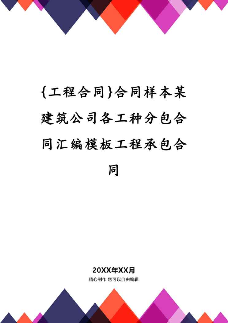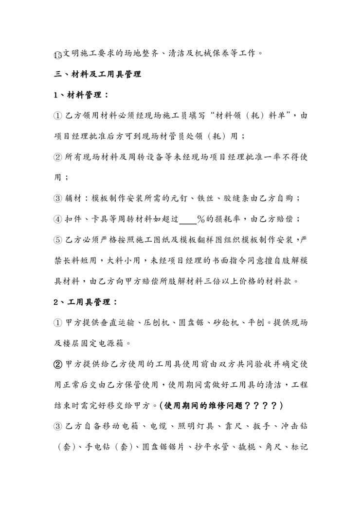 本站资深用户发布了最新的《{工程合同}合同样本某建筑公司各工种分包合同汇编模板工程承包合同》文档,以下内容为预览,详细内容可下载阅读。 声明:本站所有文章,如无特殊说明或标注,均为本站原创发布。任何个人或组织,在未征得本站同意时,禁止复制、盗用、采集、发布本站内容到任何网站、书籍等各类媒体平台。如若本站内容侵犯了原著者的合法权益,可联系我们进行处理。