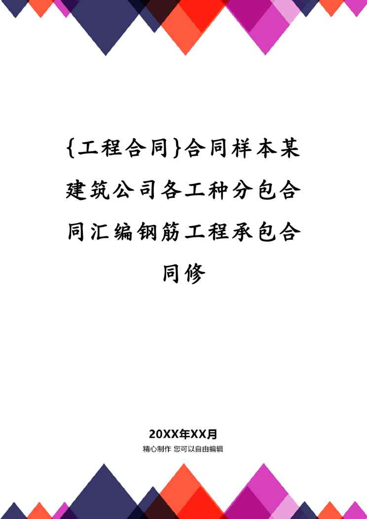 本站正式发布了《{工程合同}合同样本某建筑公司各工种分包合同汇编钢筋工程承包合同修》文档,文档详细内容可下载阅读。 声明:本站所有文章,如无特殊说明或标注,均为本站原创发布。任何个人或组织,在未征得本站同意时,禁止复制、盗用、采集、发布本站内容到任何网站、书籍等各类媒体平台。如若本站内容侵犯了原著者的合法权益,可联系我们进行处理。