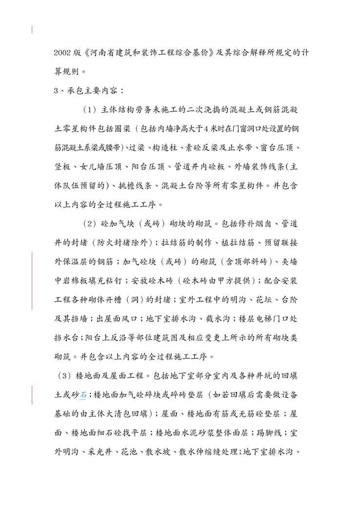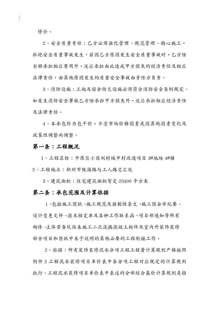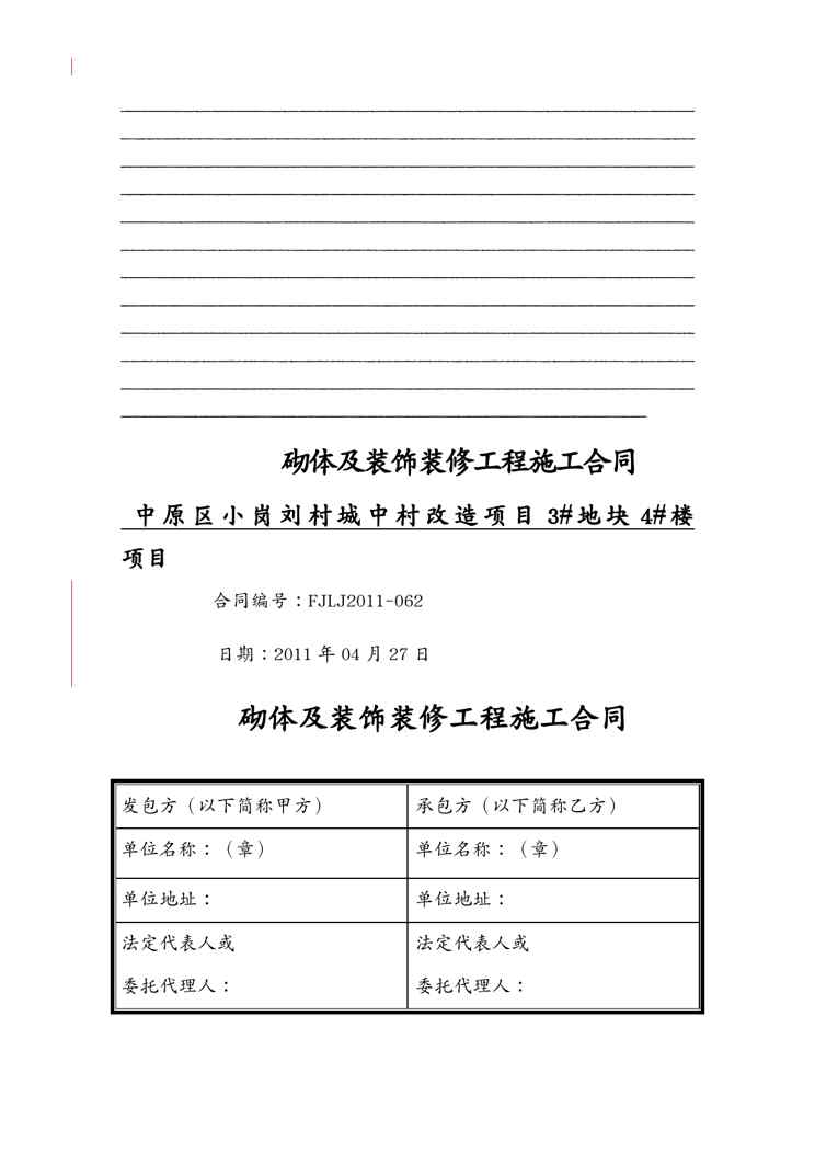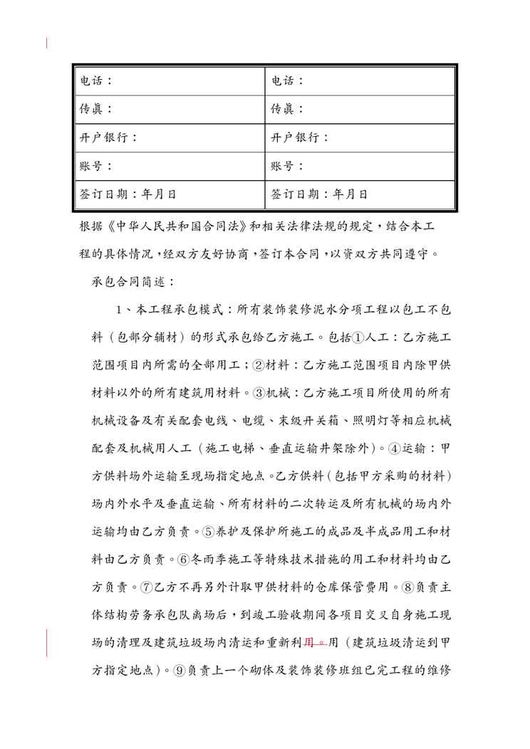 本站资深用户发布了最新的《{工程合同}地块号楼装饰装修工程施工合同谢珠》文档,以下内容为预览,详细内容可下载阅读。 声明:本站所有文章,如无特殊说明或标注,均为本站原创发布。任何个人或组织,在未征得本站同意时,禁止复制、盗用、采集、发布本站内容到任何网站、书籍等各类媒体平台。如若本站内容侵犯了原著者的合法权益,可联系我们进行处理。