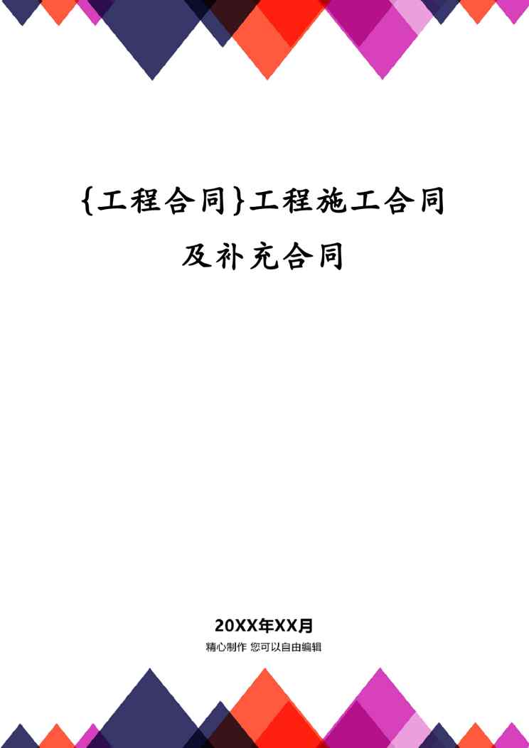 不久前,最新文档《{工程合同}工程施工合同及补充合同》全文正式在本站发布,感兴趣的用户可以下载阅读。 声明:本站所有文章,如无特殊说明或标注,均为本站原创发布。任何个人或组织,在未征得本站同意时,禁止复制、盗用、采集、发布本站内容到任何网站、书籍等各类媒体平台。如若本站内容侵犯了原著者的合法权益,可联系我们进行处理。