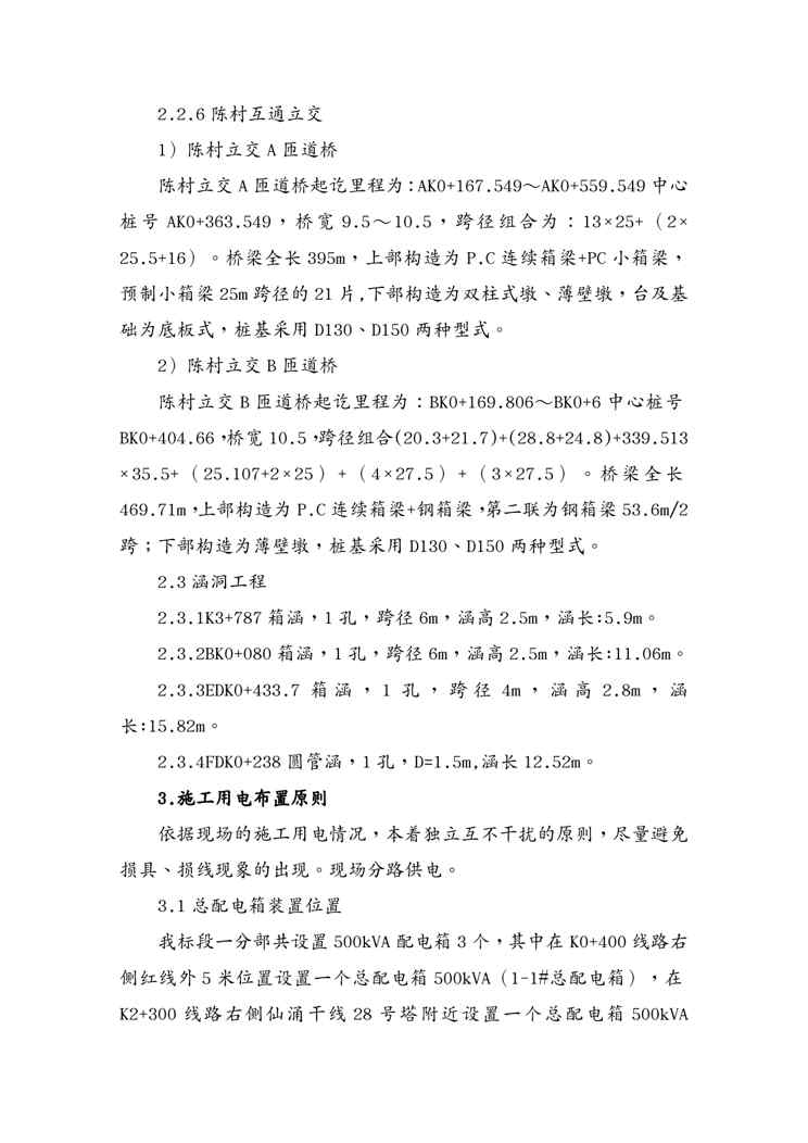 本站资深用户发布了最新的《{工程合同}广明高速二合同段临时用电工程施工方案》文档,以下内容为预览,详细内容可下载阅读。 声明:本站所有文章,如无特殊说明或标注,均为本站原创发布。任何个人或组织,在未征得本站同意时,禁止复制、盗用、采集、发布本站内容到任何网站、书籍等各类媒体平台。如若本站内容侵犯了原著者的合法权益,可联系我们进行处理。