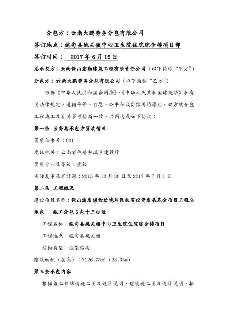 本站资深用户发布了最新的《{工程合同}建筑工程有限责任公司劳务分包合同范本》文档,以下内容为预览,详细内容可下载阅读。 声明:本站所有文章,如无特殊说明或标注,均为本站原创发布。任何个人或组织,在未征得本站同意时,禁止复制、盗用、采集、发布本站内容到任何网站、书籍等各类媒体平台。如若本站内容侵犯了原著者的合法权益,可联系我们进行处理。