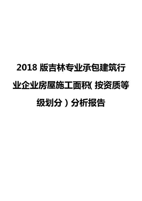 本站资深用户发布了最新的《2018版吉林专业承包建筑行业企业房屋施工面积(按资质等级划分)分析报告》文档,以下内容为预览,详细内容可下载阅读。 声明:本站所有文章,如无特殊说明或标注,均为本站原创发布。任何个人或组织,在未征得本站同意时,禁止复制、盗用、采集、发布本站内容到任何网站、书籍等各类媒体平台。如若本站内容侵犯了原著者的合法权益,可联系我们进行处理。