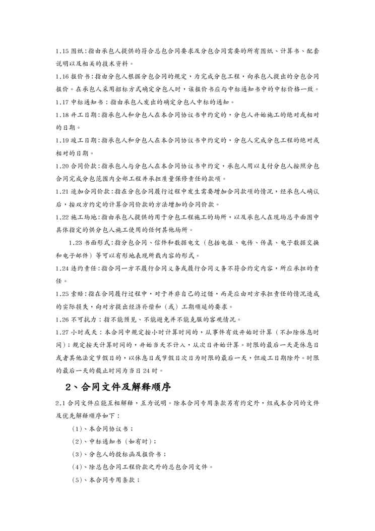 本站资深用户发布了最新的《{工程合同}建设工程施工专业分包合同示范文本某某某》文档,以下内容为预览,详细内容可下载阅读。 声明:本站所有文章,如无特殊说明或标注,均为本站原创发布。任何个人或组织,在未征得本站同意时,禁止复制、盗用、采集、发布本站内容到任何网站、书籍等各类媒体平台。如若本站内容侵犯了原著者的合法权益,可联系我们进行处理。