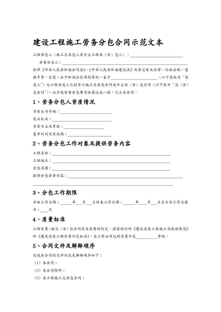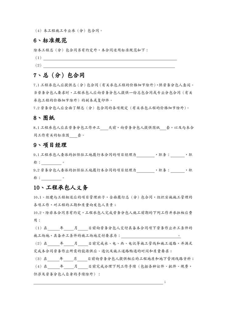 本站资深用户发布了最新的《{工程合同}建设工程施工劳务分包合同示范文本建筑工程劳务施工合》文档,以下内容为预览,详细内容可下载阅读。 声明:本站所有文章,如无特殊说明或标注,均为本站原创发布。任何个人或组织,在未征得本站同意时,禁止复制、盗用、采集、发布本站内容到任何网站、书籍等各类媒体平台。如若本站内容侵犯了原著者的合法权益,可联系我们进行处理。