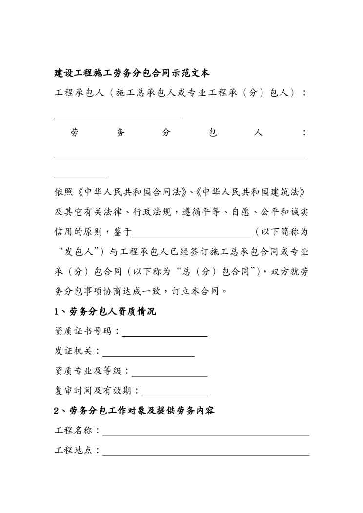 不久前,最新文档《{工程合同}建设工程施工劳务分包合同范本》全文正式在本站发布,感兴趣的用户可以下载阅读。 声明:本站所有文章,如无特殊说明或标注,均为本站原创发布。任何个人或组织,在未征得本站同意时,禁止复制、盗用、采集、发布本站内容到任何网站、书籍等各类媒体平台。如若本站内容侵犯了原著者的合法权益,可联系我们进行处理。