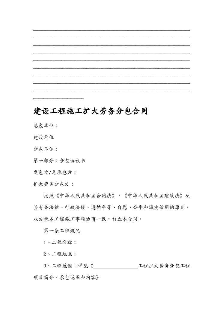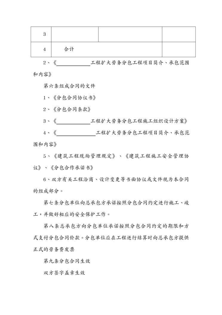 不久前,最新文档《{工程合同}建设工程施工扩大劳务分包合同》全文正式在本站发布,感兴趣的用户可以下载阅读。 声明:本站所有文章,如无特殊说明或标注,均为本站原创发布。任何个人或组织,在未征得本站同意时,禁止复制、盗用、采集、发布本站内容到任何网站、书籍等各类媒体平台。如若本站内容侵犯了原著者的合法权益,可联系我们进行处理。