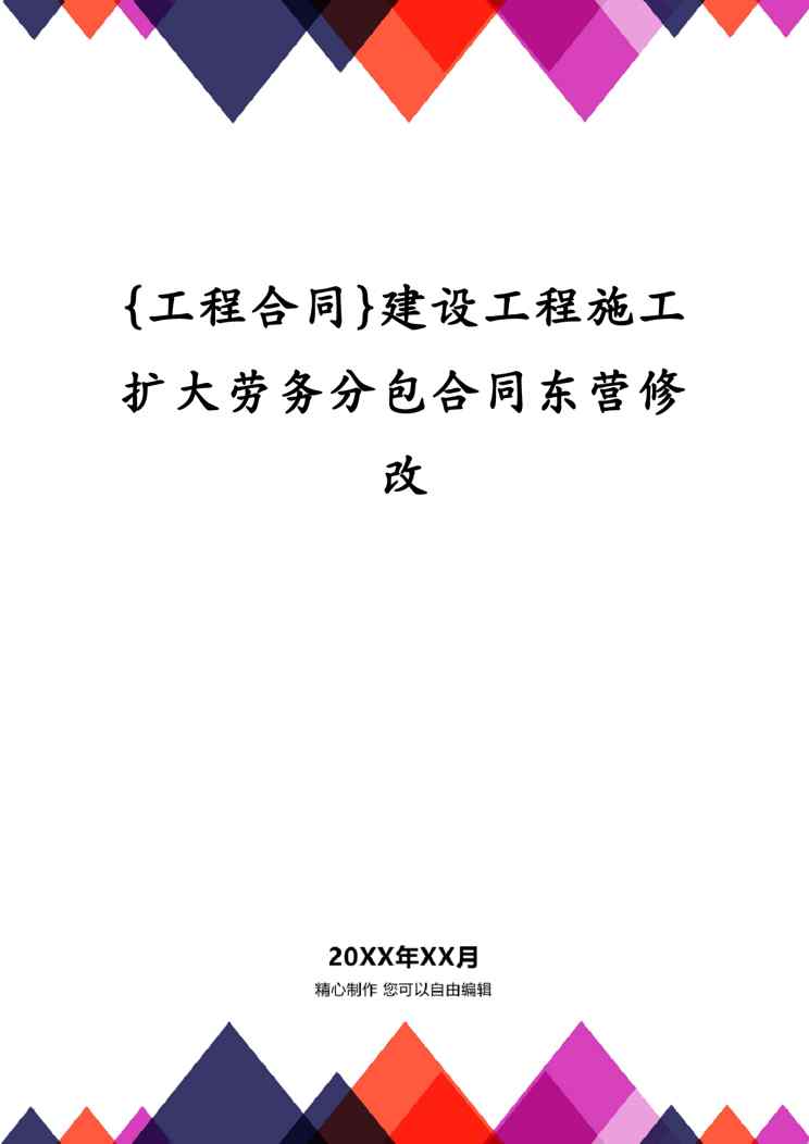 本站资深用户发布了最新的《{工程合同}建设工程施工扩大劳务分包合同东营修改》文档,以下内容为预览,详细内容可下载阅读。
