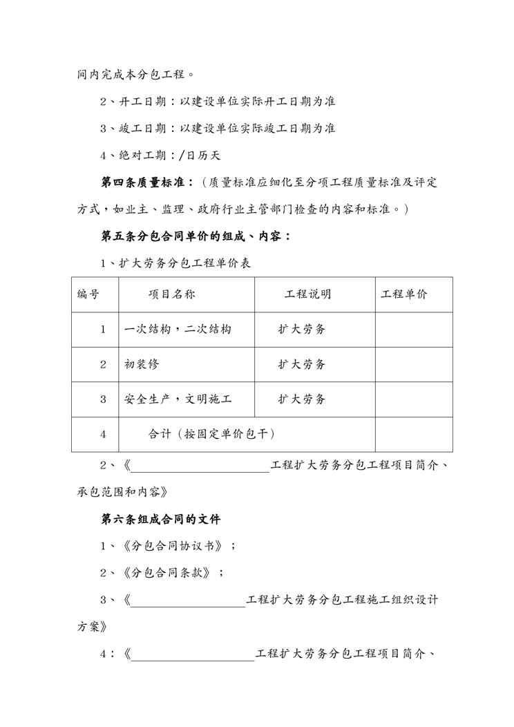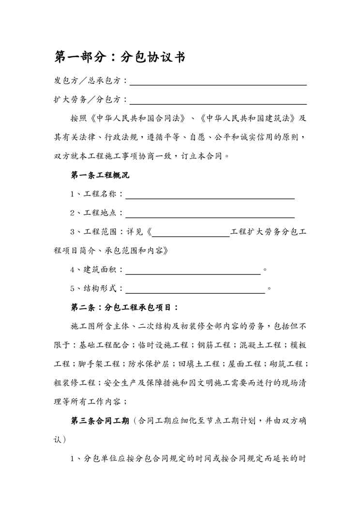 本站资深用户发布了最新的《{工程合同}建设工程施工扩大劳务分包合同修改》文档,以下内容为预览,详细内容可下载阅读。 声明:本站所有文章,如无特殊说明或标注,均为本站原创发布。任何个人或组织,在未征得本站同意时,禁止复制、盗用、采集、发布本站内容到任何网站、书籍等各类媒体平台。如若本站内容侵犯了原著者的合法权益,可联系我们进行处理。