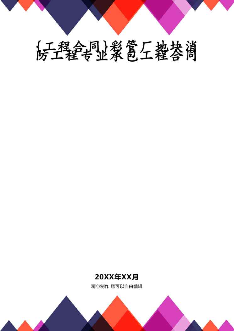 不久前,最新文档《{工程合同}彩管厂地块消防工程专业承包工程合同》全文正式在本站发布,感兴趣的用户可以下载阅读。 声明:本站所有文章,如无特殊说明或标注,均为本站原创发布。任何个人或组织,在未征得本站同意时,禁止复制、盗用、采集、发布本站内容到任何网站、书籍等各类媒体平台。如若本站内容侵犯了原著者的合法权益,可联系我们进行处理。