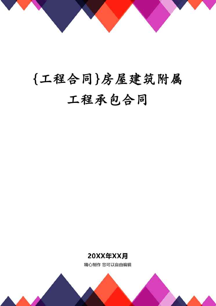本站正式发布了《{工程合同}房屋建筑附属工程承包合同》文档,文档详细内容可下载阅读。 声明:本站所有文章,如无特殊说明或标注,均为本站原创发布。任何个人或组织,在未征得本站同意时,禁止复制、盗用、采集、发布本站内容到任何网站、书籍等各类媒体平台。如若本站内容侵犯了原著者的合法权益,可联系我们进行处理。