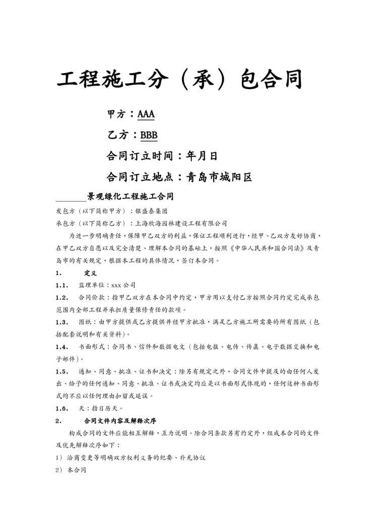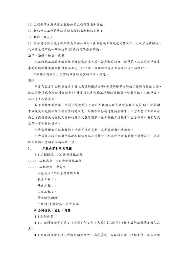 本站资深用户发布了最新的《{工程合同}景观绿化工程施工合同某某某》文档,以下内容为预览,详细内容可下载阅读。 声明:本站所有文章,如无特殊说明或标注,均为本站原创发布。任何个人或组织,在未征得本站同意时,禁止复制、盗用、采集、发布本站内容到任何网站、书籍等各类媒体平台。如若本站内容侵犯了原著者的合法权益,可联系我们进行处理。