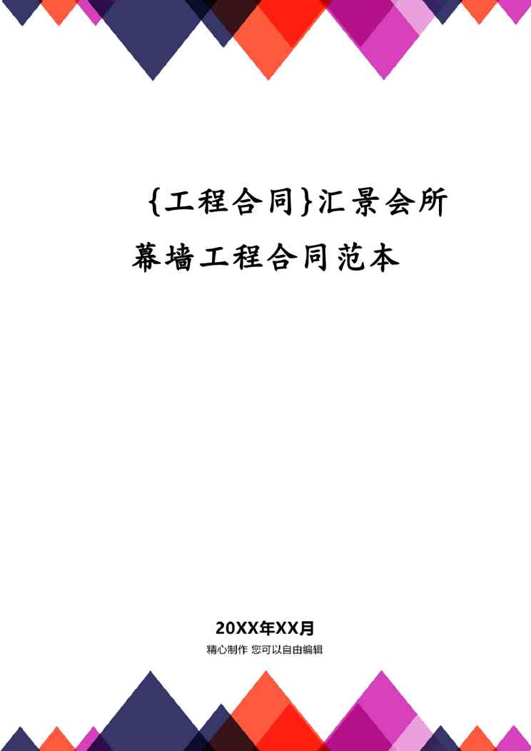不久前,最新文档《{工程合同}汇景会所幕墙工程合同范本》全文正式在本站发布,感兴趣的用户可以下载阅读。 声明:本站所有文章,如无特殊说明或标注,均为本站原创发布。任何个人或组织,在未征得本站同意时,禁止复制、盗用、采集、发布本站内容到任何网站、书籍等各类媒体平台。如若本站内容侵犯了原著者的合法权益,可联系我们进行处理。