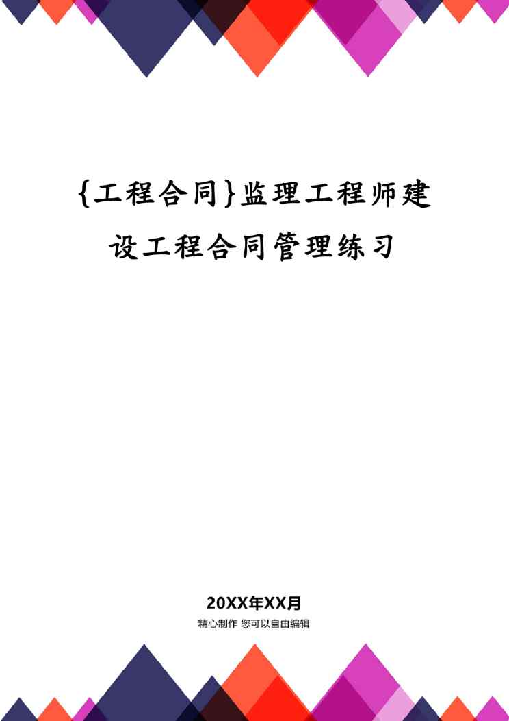本站资深用户发布了最新的《{工程合同}监理工程师建设工程合同管理练习》文档,以下内容为预览,详细内容可下载阅读。 声明:本站所有文章,如无特殊说明或标注,均为本站原创发布。任何个人或组织,在未征得本站同意时,禁止复制、盗用、采集、发布本站内容到任何网站、书籍等各类媒体平台。如若本站内容侵犯了原著者的合法权益,可联系我们进行处理。