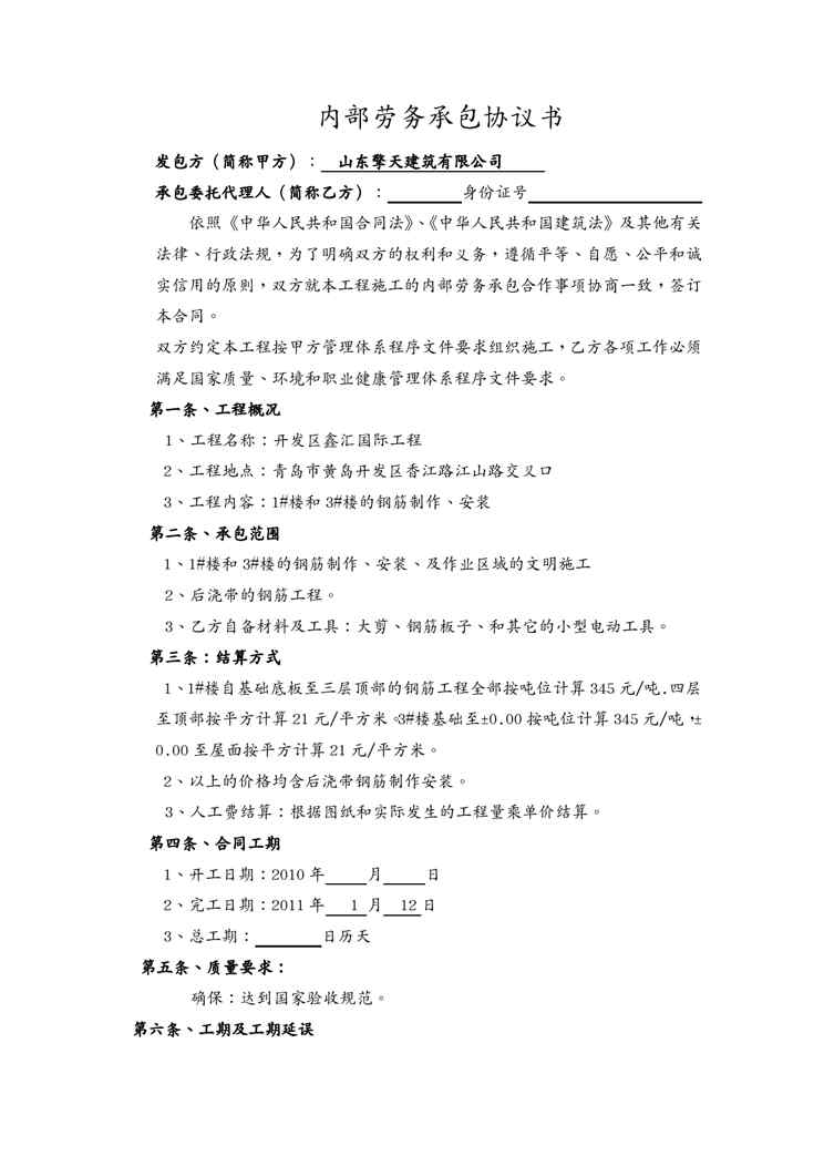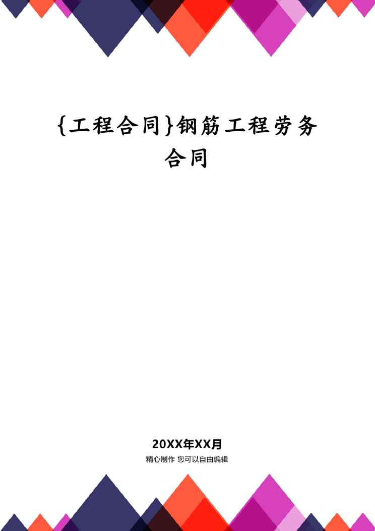 本站正式发布了《{工程合同}钢筋工程劳务合同》文档,文档详细内容可下载阅读。 声明:本站所有文章,如无特殊说明或标注,均为本站原创发布。任何个人或组织,在未征得本站同意时,禁止复制、盗用、采集、发布本站内容到任何网站、书籍等各类媒体平台。如若本站内容侵犯了原著者的合法权益,可联系我们进行处理。