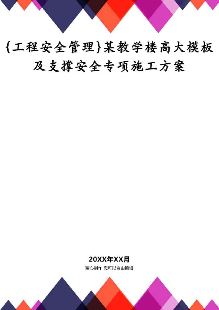 本站资深用户发布了最新的《{工程安全管理}某教学楼高大模板及支撑安全专项施工方案》文档,以下内容为预览,详细内容可下载阅读。 声明:本站所有文章,如无特殊说明或标注,均为本站原创发布。任何个人或组织,在未征得本站同意时,禁止复制、盗用、采集、发布本站内容到任何网站、书籍等各类媒体平台。如若本站内容侵犯了原著者的合法权益,可联系我们进行处理。