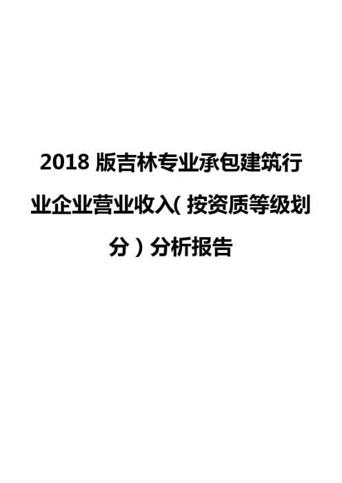 本站资深用户发布了最新的《2018版吉林专业承包建筑行业企业营业收入(按资质等级划分)分析报告》文档,以下内容为预览,详细内容可下载阅读。 声明:本站所有文章,如无特殊说明或标注,均为本站原创发布。任何个人或组织,在未征得本站同意时,禁止复制、盗用、采集、发布本站内容到任何网站、书籍等各类媒体平台。如若本站内容侵犯了原著者的合法权益,可联系我们进行处理。