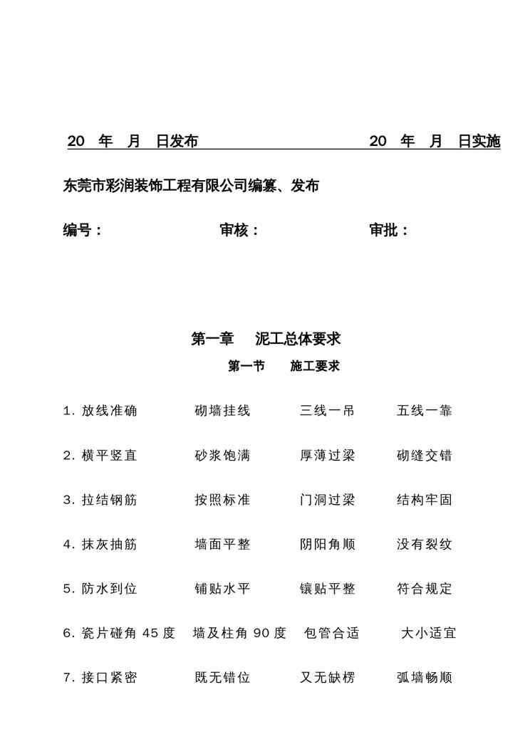 本站正式发布了《{工程标准法规}家装施工工艺标准DOC67页)》文档,文档详细内容可下载阅读。 声明:本站所有文章,如无特殊说明或标注,均为本站原创发布。任何个人或组织,在未征得本站同意时,禁止复制、盗用、采集、发布本站内容到任何网站、书籍等各类媒体平台。如若本站内容侵犯了原著者的合法权益,可联系我们进行处理。