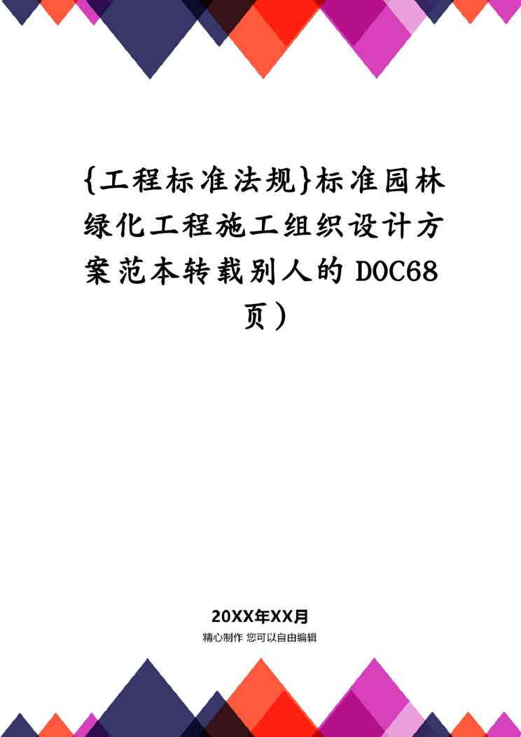 本站资深用户发布了最新的《{工程标准法规}标准园林绿化工程施工组织设计方案范本转载别人的DOC68页)》文档,以下内容为预览,详细内容可下载阅读。 声明:本站所有文章,如无特殊说明或标注,均为本站原创发布。任何个人或组织,在未征得本站同意时,禁止复制、盗用、采集、发布本站内容到任何网站、书籍等各类媒体平台。如若本站内容侵犯了原著者的合法权益,可联系我们进行处理。