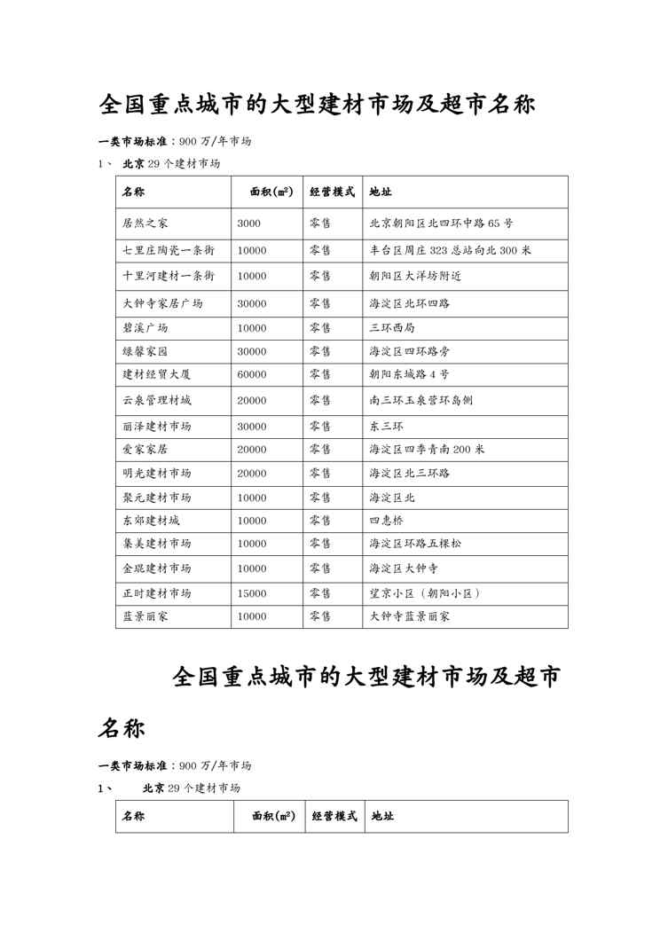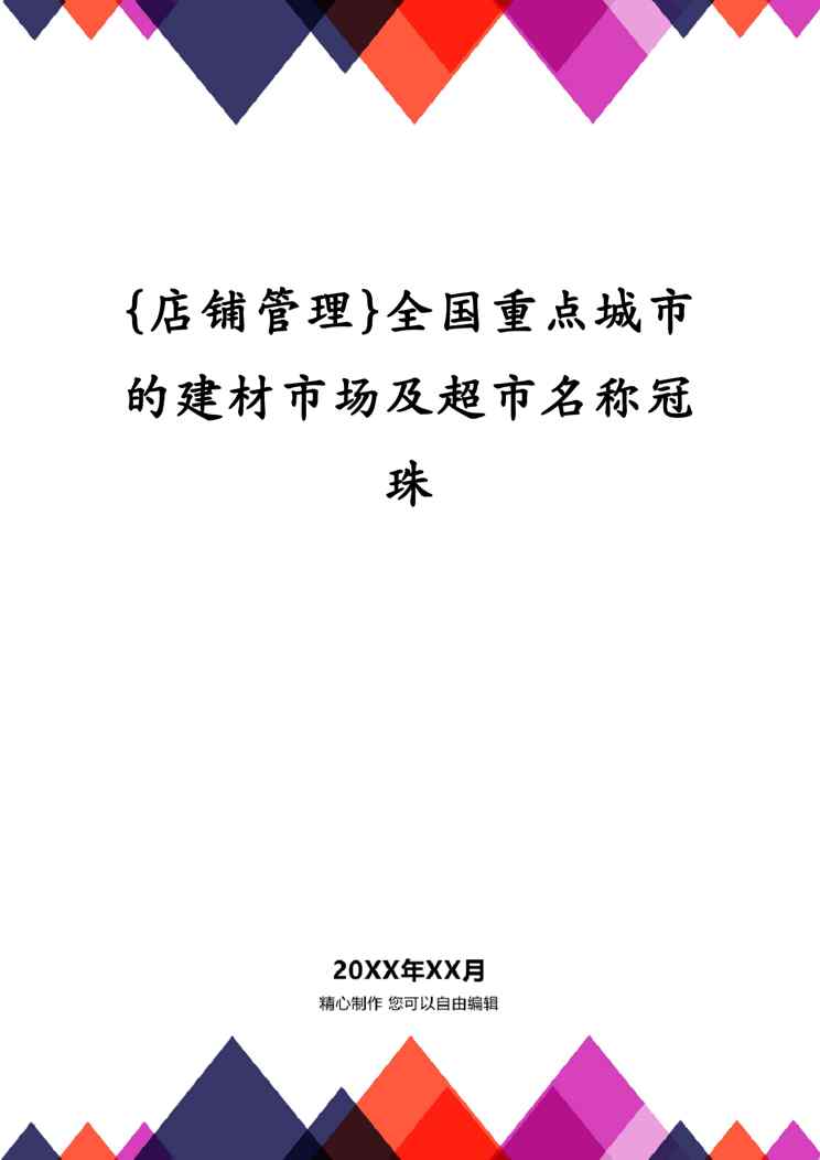 不久前,最新文档《{店铺管理}全国重点城市的建材市场及超市名称冠珠》全文正式在本站发布,感兴趣的用户可以下载阅读。 声明:本站所有文章,如无特殊说明或标注,均为本站原创发布。任何个人或组织,在未征得本站同意时,禁止复制、盗用、采集、发布本站内容到任何网站、书籍等各类媒体平台。如若本站内容侵犯了原著者的合法权益,可联系我们进行处理。