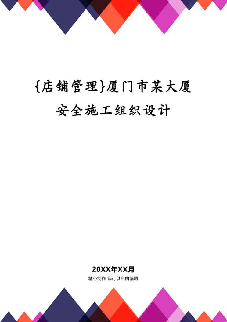 不久前,最新文档《{店铺管理}厦门市某大厦安全施工组织设计》全文正式在本站发布,感兴趣的用户可以下载阅读。 声明:本站所有文章,如无特殊说明或标注,均为本站原创发布。任何个人或组织,在未征得本站同意时,禁止复制、盗用、采集、发布本站内容到任何网站、书籍等各类媒体平台。如若本站内容侵犯了原著者的合法权益,可联系我们进行处理。