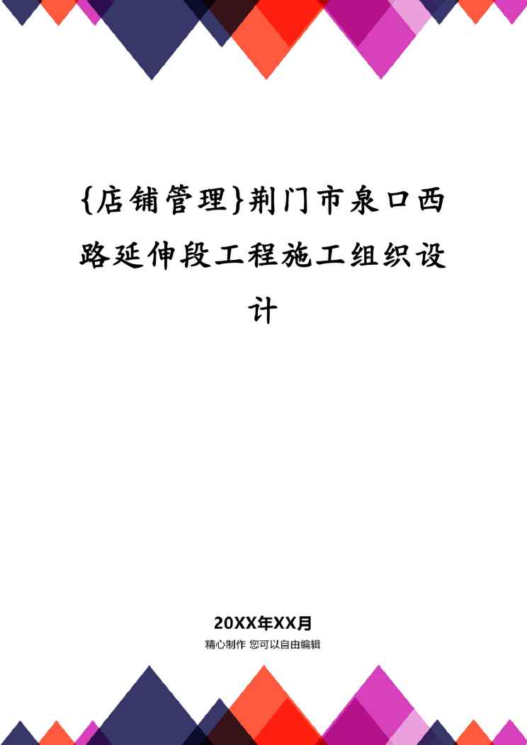 本站资深用户发布了最新的《{店铺管理}荆门市泉口西路延伸段工程施工组织设计》文档,以下内容为预览,详细内容可下载阅读。 声明:本站所有文章,如无特殊说明或标注,均为本站原创发布。任何个人或组织,在未征得本站同意时,禁止复制、盗用、采集、发布本站内容到任何网站、书籍等各类媒体平台。如若本站内容侵犯了原著者的合法权益,可联系我们进行处理。