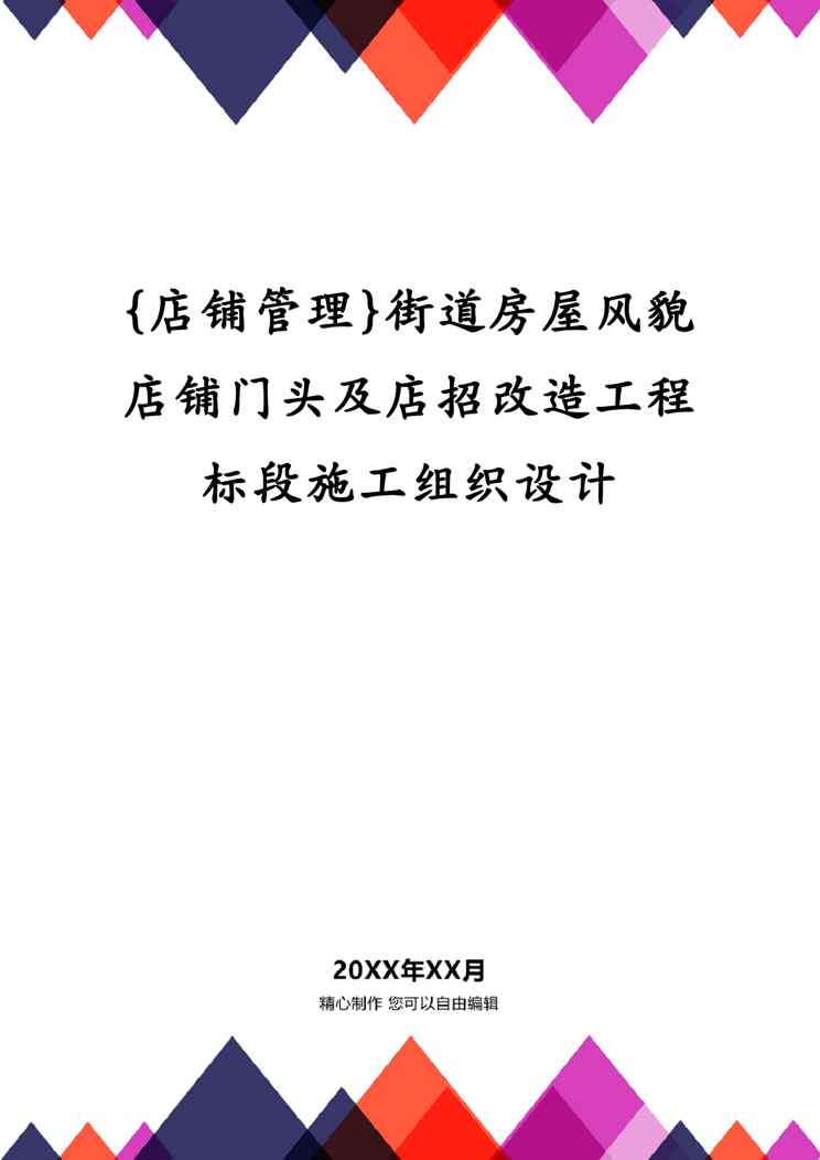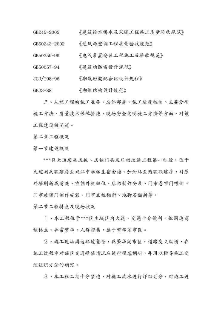 本站正式发布了《{店铺管理}街道房屋风貌店铺门头及店招改造工程标段施工组织设计》文档,文档详细内容可下载阅读。 声明:本站所有文章,如无特殊说明或标注,均为本站原创发布。任何个人或组织,在未征得本站同意时,禁止复制、盗用、采集、发布本站内容到任何网站、书籍等各类媒体平台。如若本站内容侵犯了原著者的合法权益,可联系我们进行处理。