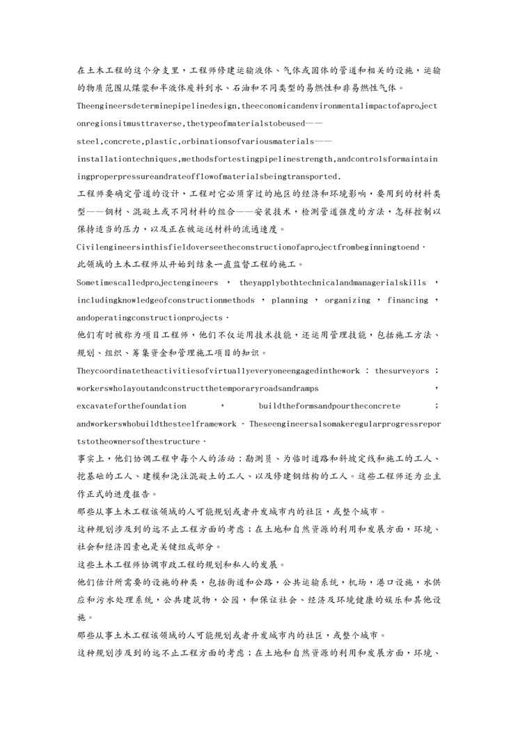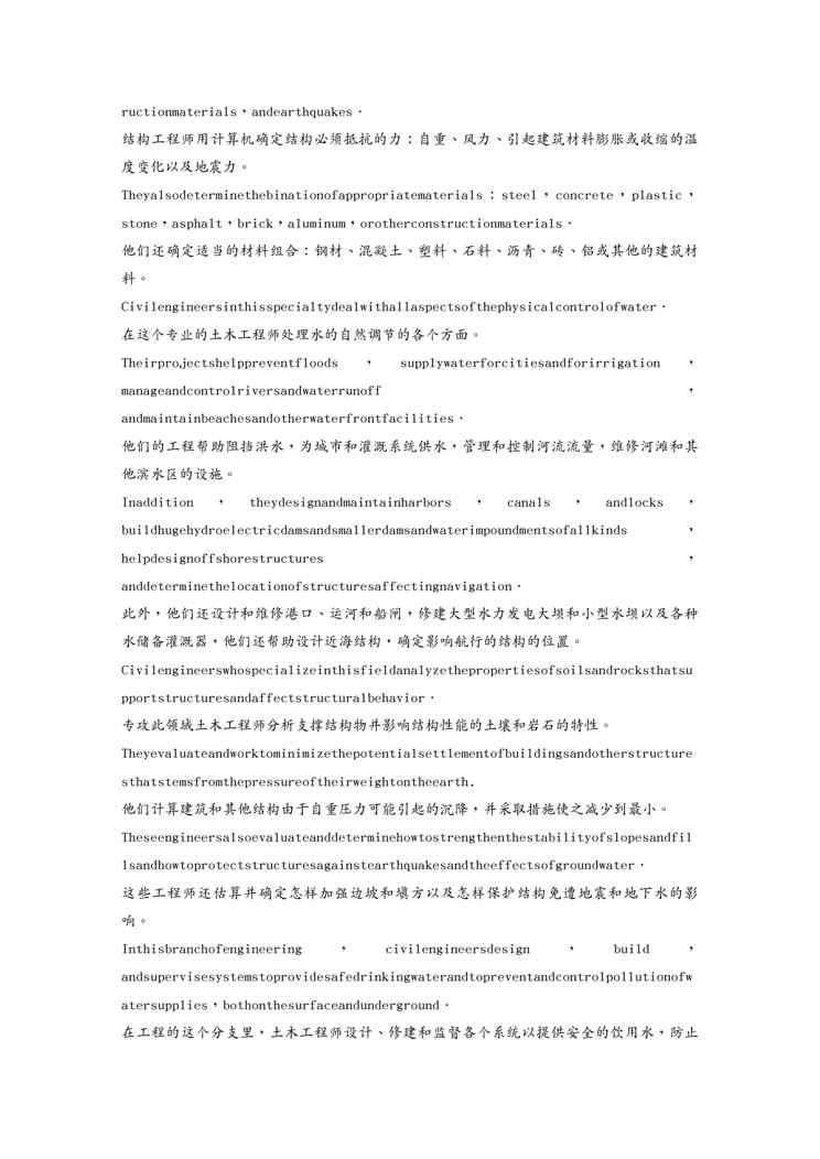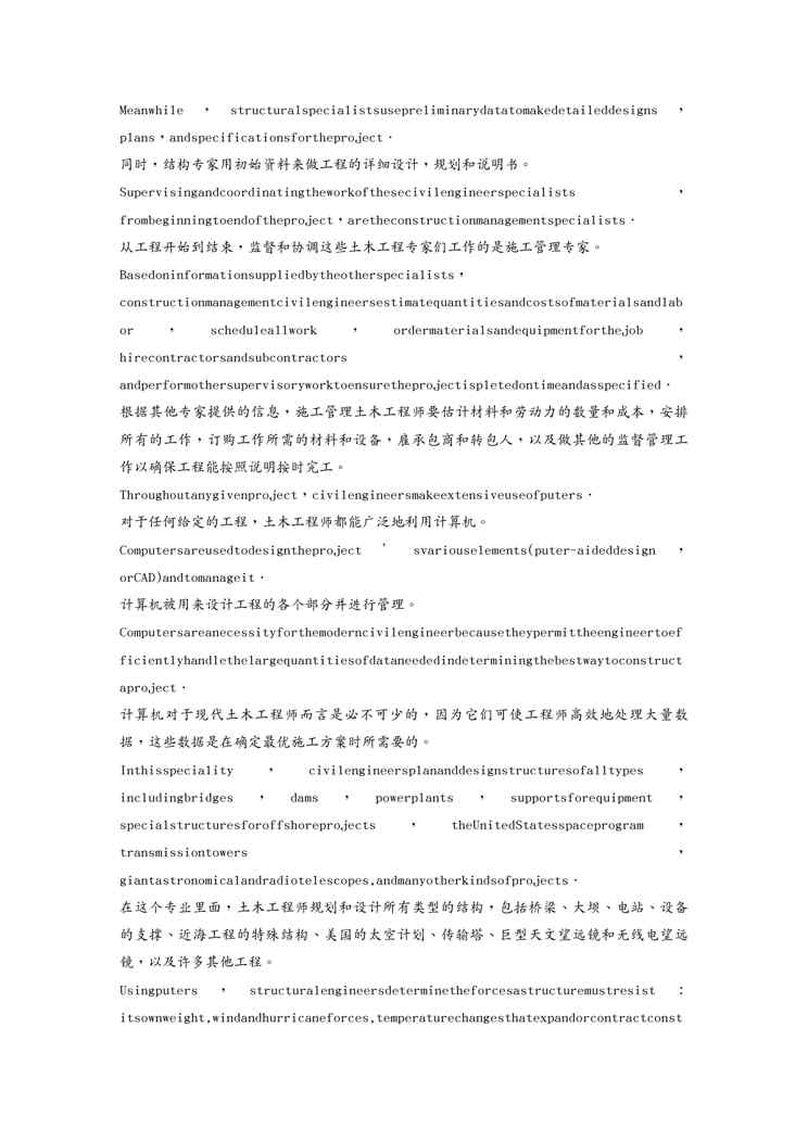 不久前,最新文档《{教育管理}土木工程专业外语翻译》全文正式在本站发布,感兴趣的用户可以下载阅读。 声明:本站所有文章,如无特殊说明或标注,均为本站原创发布。任何个人或组织,在未征得本站同意时,禁止复制、盗用、采集、发布本站内容到任何网站、书籍等各类媒体平台。如若本站内容侵犯了原著者的合法权益,可联系我们进行处理。