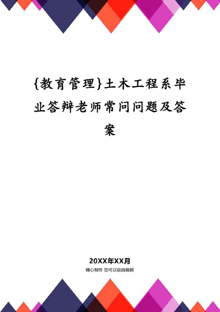 本站正式发布了《{教育管理}土木工程系毕业答辩老师常问问题及答案》文档,文档详细内容可下载阅读。 声明:本站所有文章,如无特殊说明或标注,均为本站原创发布。任何个人或组织,在未征得本站同意时,禁止复制、盗用、采集、发布本站内容到任何网站、书籍等各类媒体平台。如若本站内容侵犯了原著者的合法权益,可联系我们进行处理。