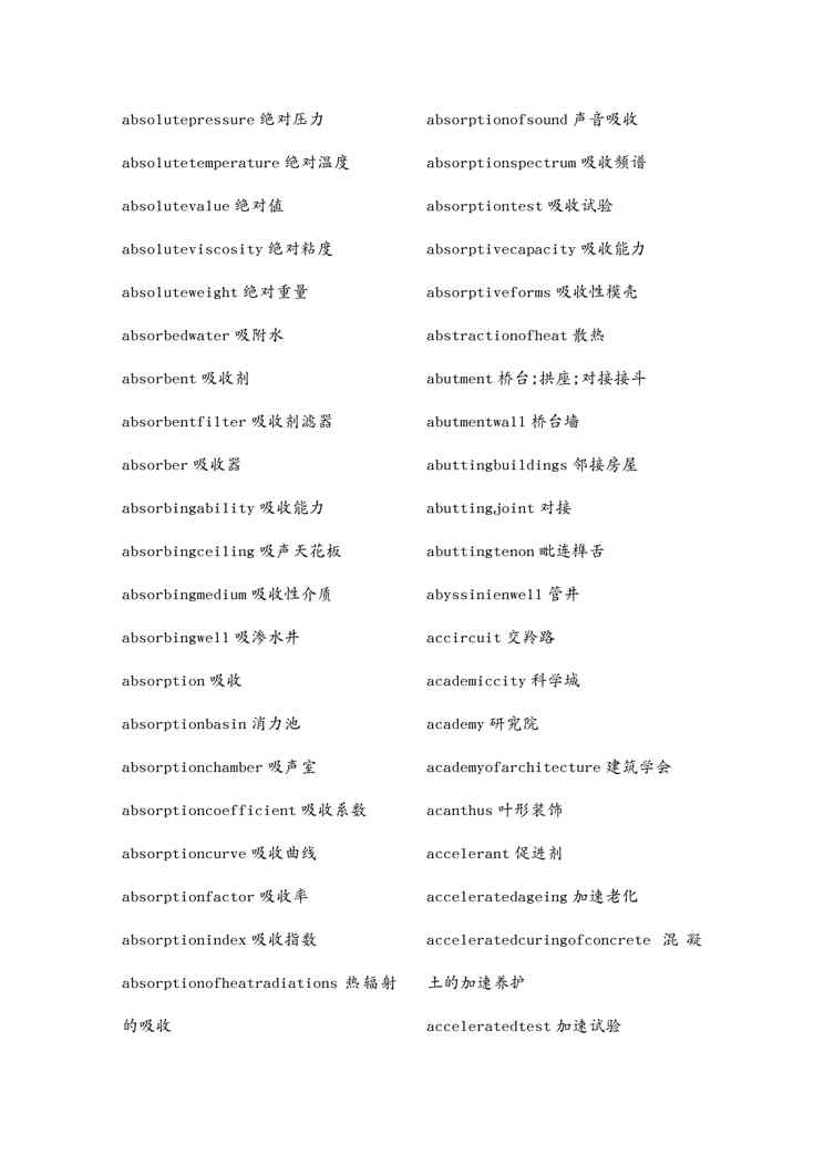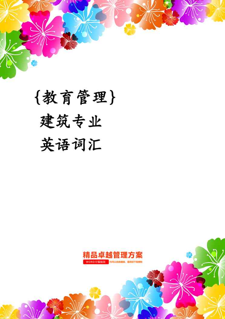 不久前,最新文档《{教育管理}建筑专业英语词汇》全文正式在本站发布,感兴趣的用户可以下载阅读。 声明:本站所有文章,如无特殊说明或标注,均为本站原创发布。任何个人或组织,在未征得本站同意时,禁止复制、盗用、采集、发布本站内容到任何网站、书籍等各类媒体平台。如若本站内容侵犯了原著者的合法权益,可联系我们进行处理。
