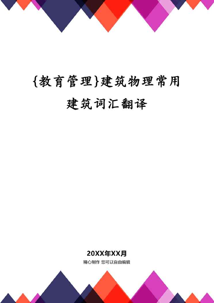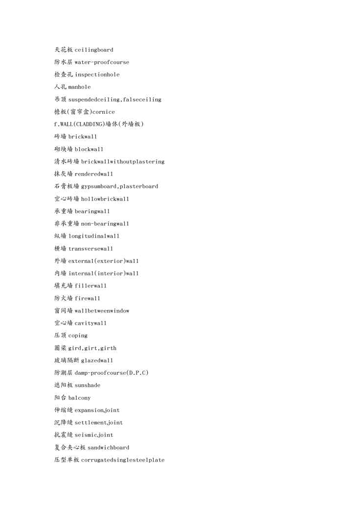 不久前,最新文档《{教育管理}建筑物理常用建筑词汇翻译》全文正式在本站发布,感兴趣的用户可以下载阅读。 声明:本站所有文章,如无特殊说明或标注,均为本站原创发布。任何个人或组织,在未征得本站同意时,禁止复制、盗用、采集、发布本站内容到任何网站、书籍等各类媒体平台。如若本站内容侵犯了原著者的合法权益,可联系我们进行处理。