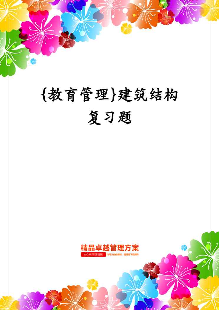 本站资深用户发布了最新的《{教育管理}建筑结构复习题》文档,以下内容为预览,详细内容可下载阅读。 声明:本站所有文章,如无特殊说明或标注,均为本站原创发布。任何个人或组织,在未征得本站同意时,禁止复制、盗用、采集、发布本站内容到任何网站、书籍等各类媒体平台。如若本站内容侵犯了原著者的合法权益,可联系我们进行处理。