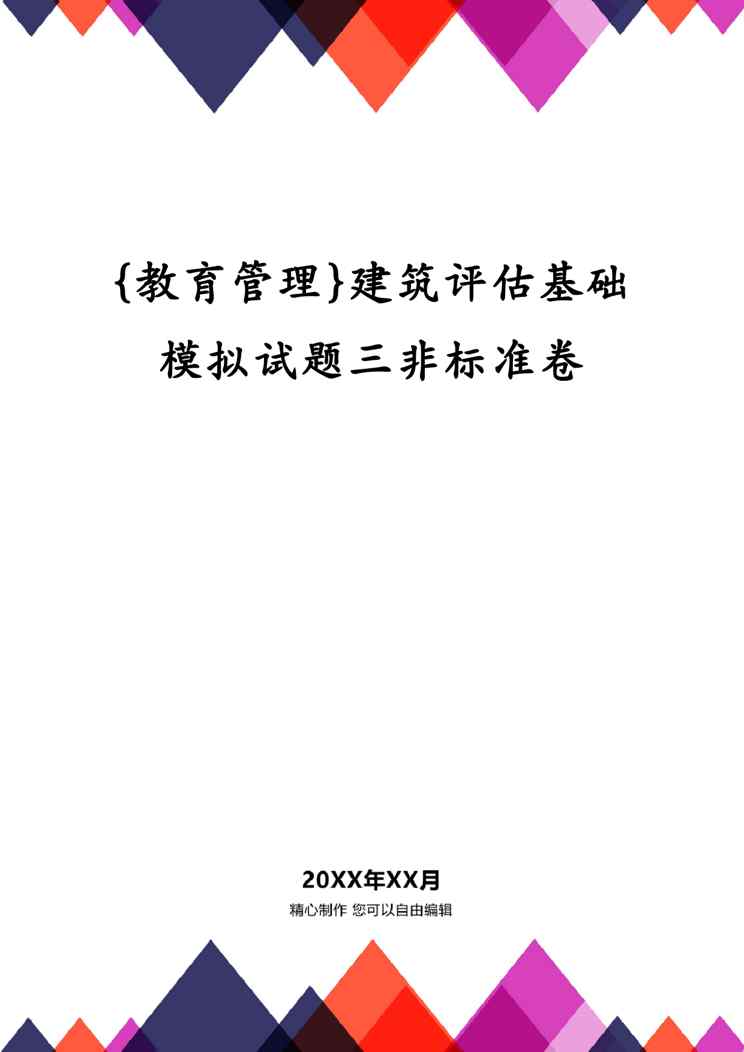 本站资深用户发布了最新的《{教育管理}建筑评估基础模拟试题三非标准卷》文档,以下内容为预览,详细内容可下载阅读。 声明:本站所有文章,如无特殊说明或标注,均为本站原创发布。任何个人或组织,在未征得本站同意时,禁止复制、盗用、采集、发布本站内容到任何网站、书籍等各类媒体平台。如若本站内容侵犯了原著者的合法权益,可联系我们进行处理。